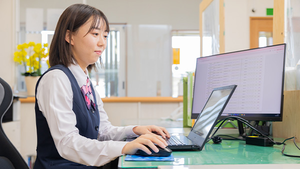 令和4年4月より完全週休2日制(土・日曜※社内カレンダーに準ずる)を設け、さらに働きやすい職場環境に。また、デジタル化を積極的に推進することで業務の効率化を図り、ワークライフバランスの充実にも注力しています。