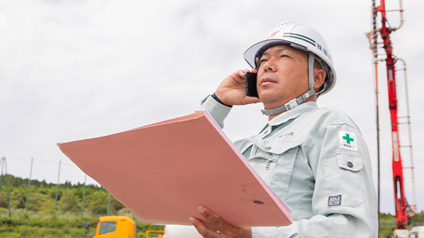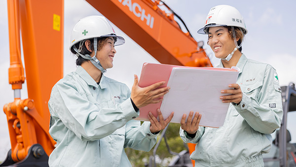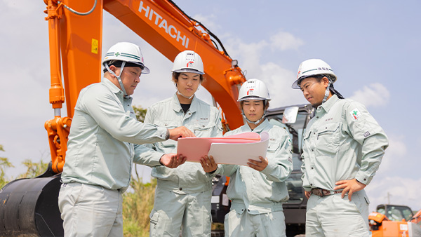 土木工事の全体を取り仕切る、現場監督を行っています。今までの仕事で印象に残っているのは、電波塔の基礎工事。タイトな工期でしたが、みんなの安全を守って無事に完成した時はやりがいを感じました。これからもお客様に喜んでもらえるように、力を合わせてベストを尽くしていきたいです。
