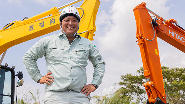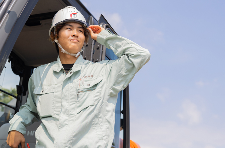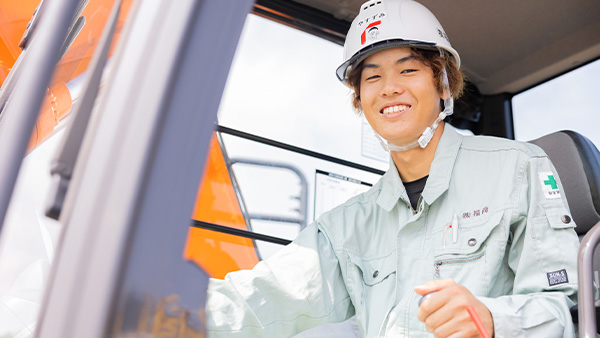 病院の外構や道路舗装といった土木工事の現場で、資材の運搬や銃器での堀削などを行っています。各現場に合わせて効率を考えながら進行して、無事に完成した時の達成感はたまりません。つくったものが形になって残り、地域の暮らしが豊かになる、この仕事のやりがいを日々感じて働いています。