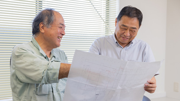 主にお客様邸の建築に携わっています。お客様が建てたい住まいのご希望を伺って、CADと呼ばれるパソコンのソフトウェアで設計。施工管理者として、建設中の現場にも立ち会います。完成後に「イメージ通りの家ができた!」とお客様に喜んでいただけるのが一番のやりがいです。