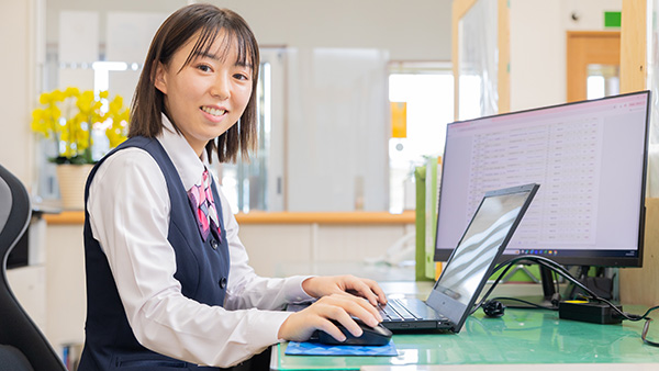 2年間かけて勉強し、昨年無事に取得できた「建設業経理士2級」の資格を活かしながら経理業務を担当。現金の出納管理など地道な作業が多いですが、ミスなく業務を完遂できた時はやりがいを感じています。これからも待ちの姿勢ではなく、自ら進んで仕事に励み、色々と挑戦していきたいです。