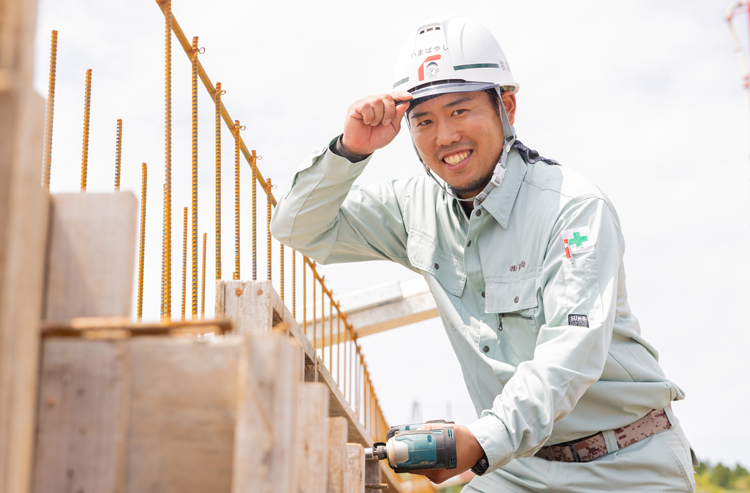 資格取得費用を会社が全て負担してくれるなど、社員のスキルアップを応援する企業風土に惹かれて入社しました。今はまだ見習い中で、色々な現場に行かせてもらい、将来自分がやりたい職種を考えている最中です。土木関係のさまざまな資格を取得するか、大工を目指すかなど夢が膨らみます。